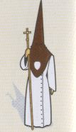 Los nazarenos visten con el hábito clásico de la orden del Carmelo, túnica blanca y escapulario y antifaz marrón carmelitano, todo ello de sarga o algodón rasgado, se ciñen a la cintura con un cíngulo con los 2 colores de la túnica. Calzas blancas y sandalias de nazareno en color camel. Todos los nazarenos portan un capirote idéntico, de 1,10 m de altura.