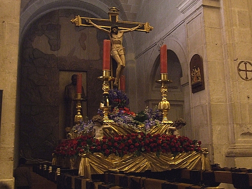 Es una talla que data del siglo XVIII, de autor anónimo y que representa a Cristo Muerto y Crucificado. Ha sido restaurada varias veces. Se cree que ha salido anteriormente en procesión, pues la cruz tiene el anclaje para su colocación en el trono. Esta imagen se encuentra expuesta al culto en la sacristía de la Basílica de Santa María.